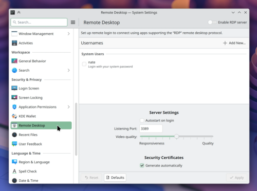 - В конфигураторе страница с настройками удалённого рабочего стола (Remote Desktop) перенесена в группу «Безопасность и приватность».